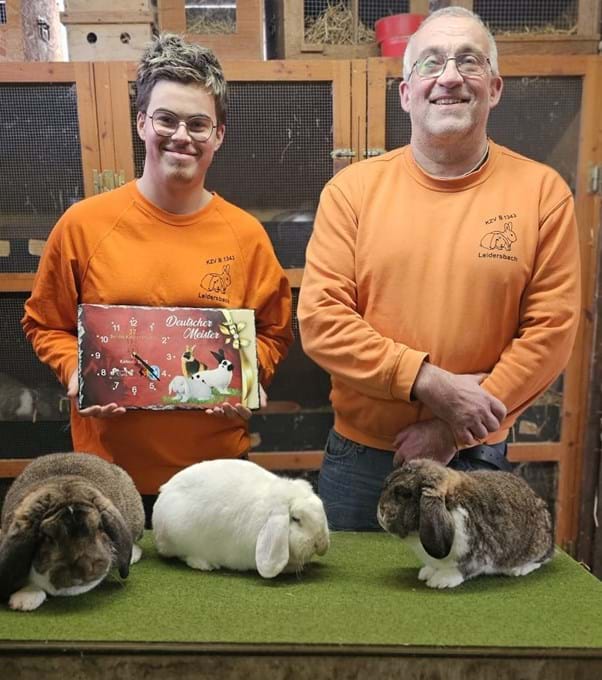 Mit seinem Deutschen Kleinwidder weiß-blau errang Jannik Frieß den Deutschen Meistertitel – eine außergewöhnliche Auszeichnung, die höchsten Respekt verdient. Zusätzlich erreichte er mit seinem Deutschen Widder wildfarben-weiß den zweiten Platz und wurde mit einer ZDRKE-Medaille geehrt, einer der bedeutendsten Auszeichnungen im Zuchtwesen.
